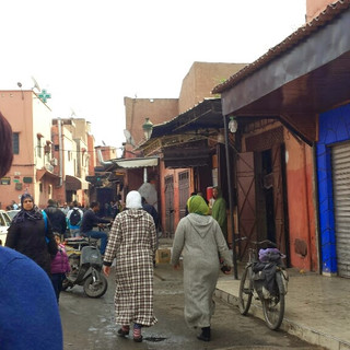 After taking our bags in the rooms and freshening up, we headed downstairs to follow these people into town. The lady who offered their help was very talkative and talked the entire way. It was about a 10 to 15 minute walk into town from the Ryad. I took the pictures below to help us find our way back to the Ryad. Chloe and Kofo thought I was crazy for doing that but it ended up helping us get back.