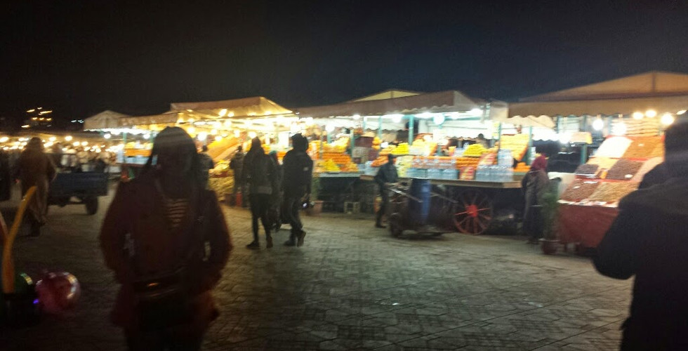 We headed out to the infamous Jemma El-Fna for the night market after resting up. The picture below shows me wearing a jacket and you are probably wondering why in hot Africa, right? Well we were deceived! We had been looking forward to Morocco on this tour because it was soo cold in Europe but the weather disappointed. When we arrived in the daytime, the weather was nice and we thought it would stay that way but it quickly changed on us as the sun went down. Anywho, this was byfar the liveliest night market I have ever been to. There were so many vendors selling all kinds of things like clothing, argan oil, lanterns, shows, leather, food, spices, you name it and they had it!